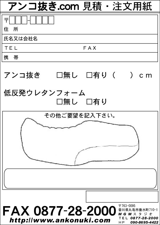 アンコ抜きタックロールシート張替えシート加工 FAX 見積り 注文用紙
